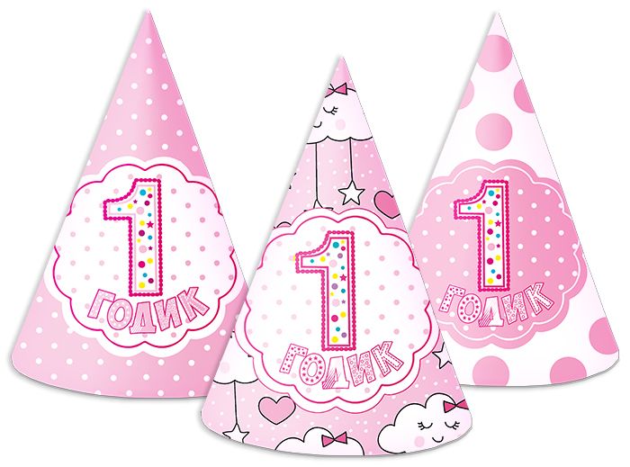 Читать все статьиКолпаки Годик девочка/мальчик 3 дизайна 16 см 8 шт.