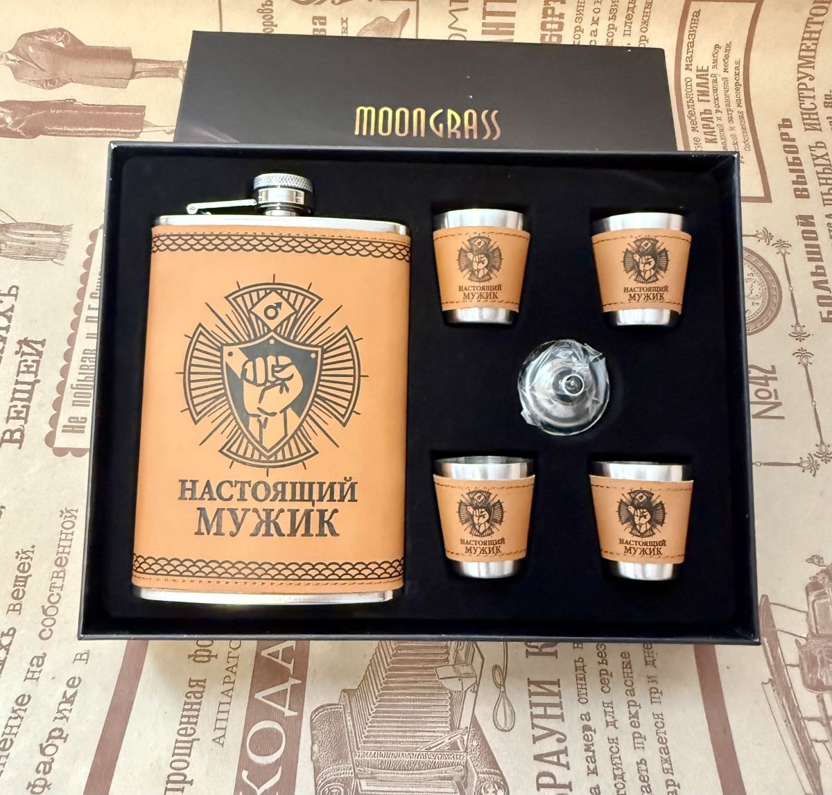 Читать все статьиПодарочный набор №10 «Настоящий мужик» Фляжка, рюмки, воронка