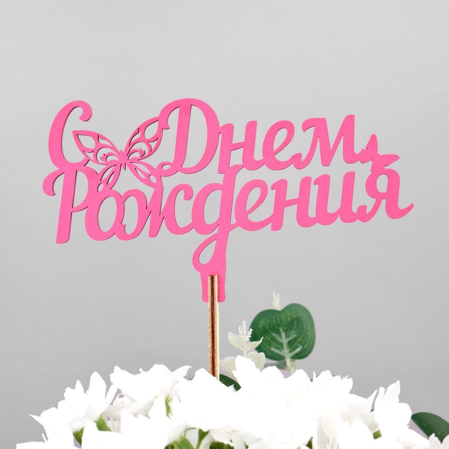 Читать все статьиТоппер «С Днем рождения (бабочка)» (ножка 25 см), малина